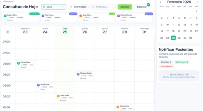 Com uma agenda médica digital, a clínica centraliza horários, organiza profissionais e acompanha atendimentos em tempo real.